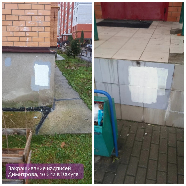 На Георгия Димитрова, 10 и 12 закрасили подозрительные надписи на фасаде.