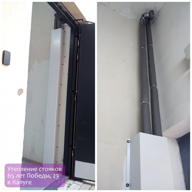 Утеплили стояки отопления и установили защитный короб в 3-м подъезде на 65 лет Победы, 23