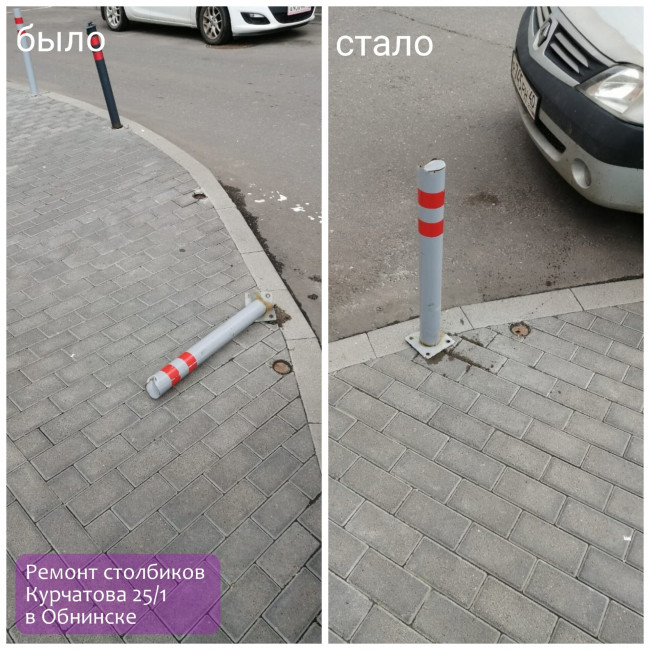Отремонтировали антипарковочный столбик на Курчатова, 25/4