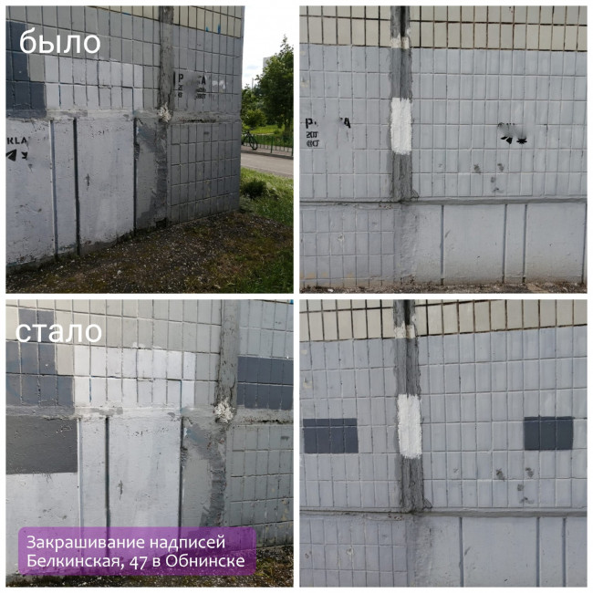 На Белкинской, 47; на Ленина, 14, 174 и 182; на Калужской, 9; на Маркса, 110 закрасили рекламу запрещённых веществ.