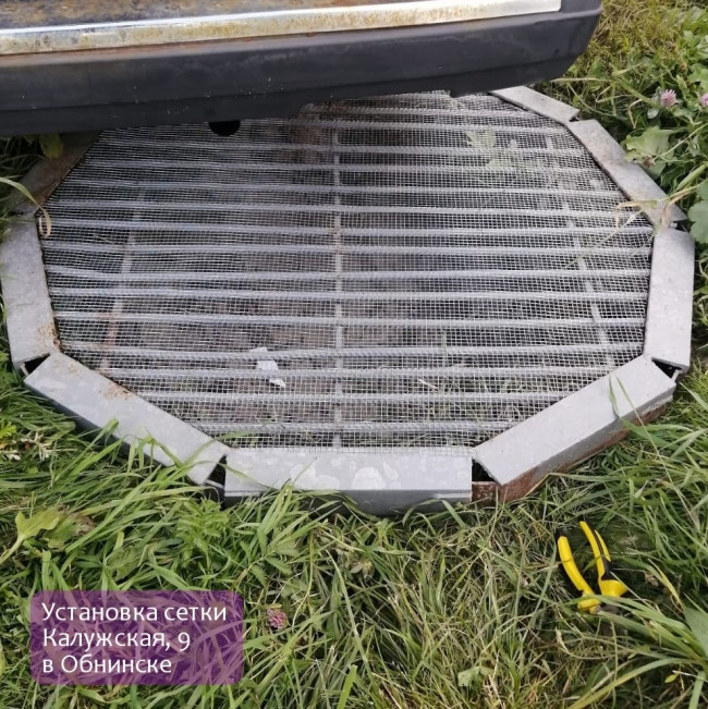 На Калужской, 9 на крышку колодца дренажного слива установили сетку.