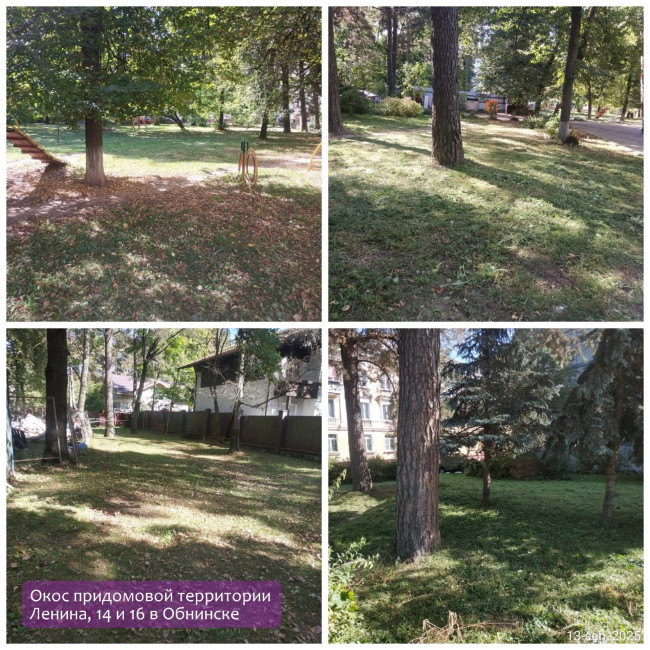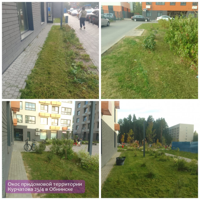 На Курчатова, 25/4 и 25/1; Ленина 14 и 16; Треугольной, 1окосили газон.