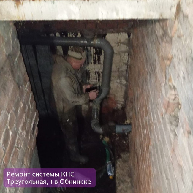 На Треугольной, 1 в подвале 4-го подъезда ремонтировали систему канализации.