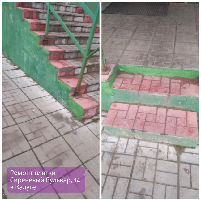 ️На Сиреневом бульваре, 14 отремонтировали плитку у входных групп.