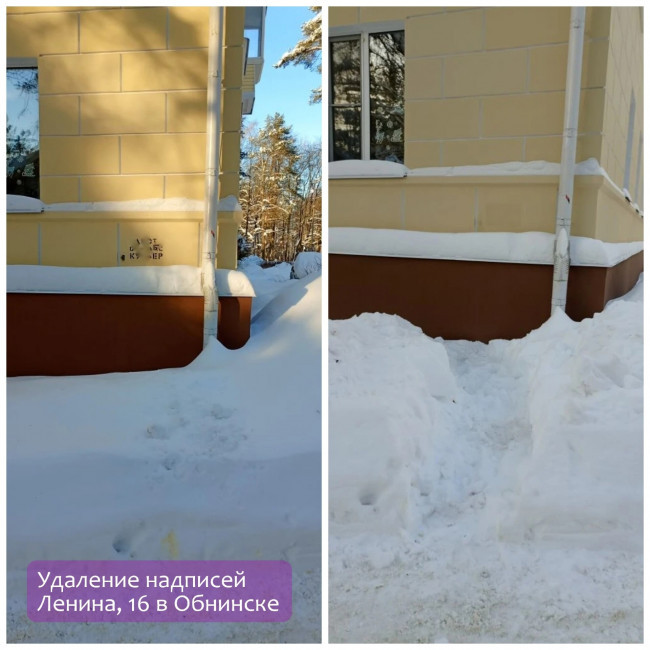 Закрасили надписи на фасаде на Победы, 3; Ленина, 14 и 16.
