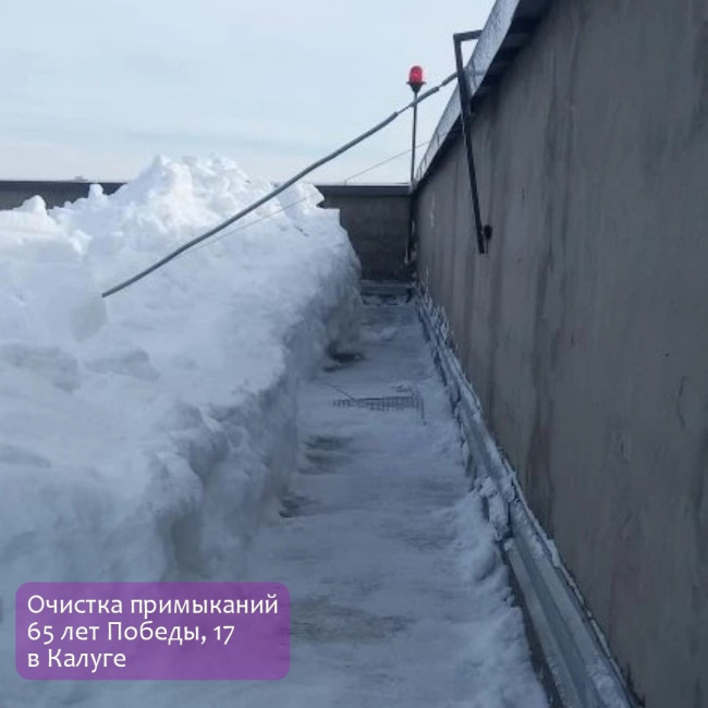 На 65 лет Победы, 17 почистили от снега примыкание на кровле.