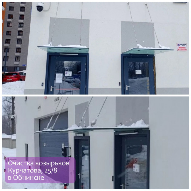 Очистили козырьки на Курчатова, 25/8